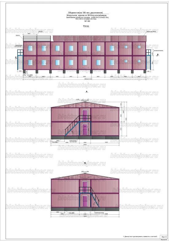 Двухэтажное общежитие из 36 БК, на 100 человек